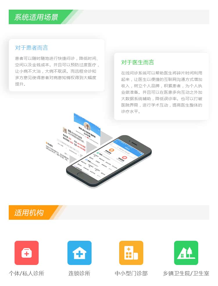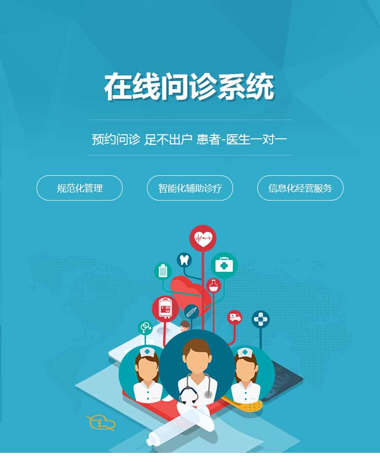 在线问诊系统是一款专业的医疗门诊管理系统,致力于利用移动互联网的科技手段帮助人们掌握健康、治疗病痛。为门诊部提供模块化的全流程管理,全面提高诊疗服务效率,帮助医院提高形象,增加经济效益,提高患者就诊满意度。